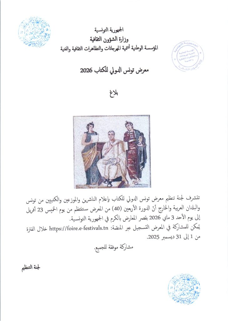 الرئيسية/بلاغات/بلاغ إلى الناشرين و الموزعين و الكتبيين بلاغات بلاغ إلى الناشرين و الموزعين و الكتبيين منذ أسبوع واحد 747 أقل من دقيقة فيسبوك تويتر واتساب مشاركة عبر البريد طباعة رابط المنصة منذ أسبوع واحد 747 أقل من دقيقة فيسبوك تويتر واتساب مشاركة عبر البريد طباعة اظهر المزيد شاركها فيسبوك تويتر واتساب مشاركة عبر البريد طباعة